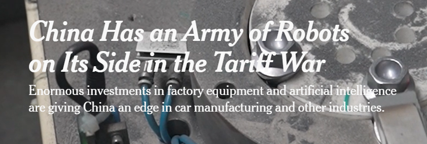 《纽约时报》网坐近期的一篇文章聚焦中国制制业范畴的机械军,认为它们完全改变了中国的制制业,使得中国工场有能力将其出口的很多产物价钱连结正在较低程度,应对商业和方面具有劣势。